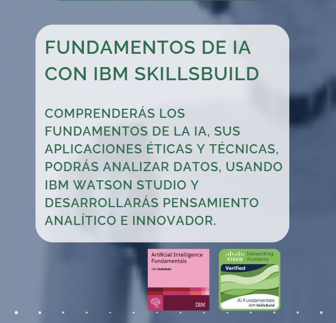 Con el respaldo de Cisco Networking Academy e IBM SkillsBuid accederás a contenidos de certificación internacional, prácticas reales y podrás obtener 3 Insignias Digitales que validaran tus nuevas habilidades en el ambiente laboral.